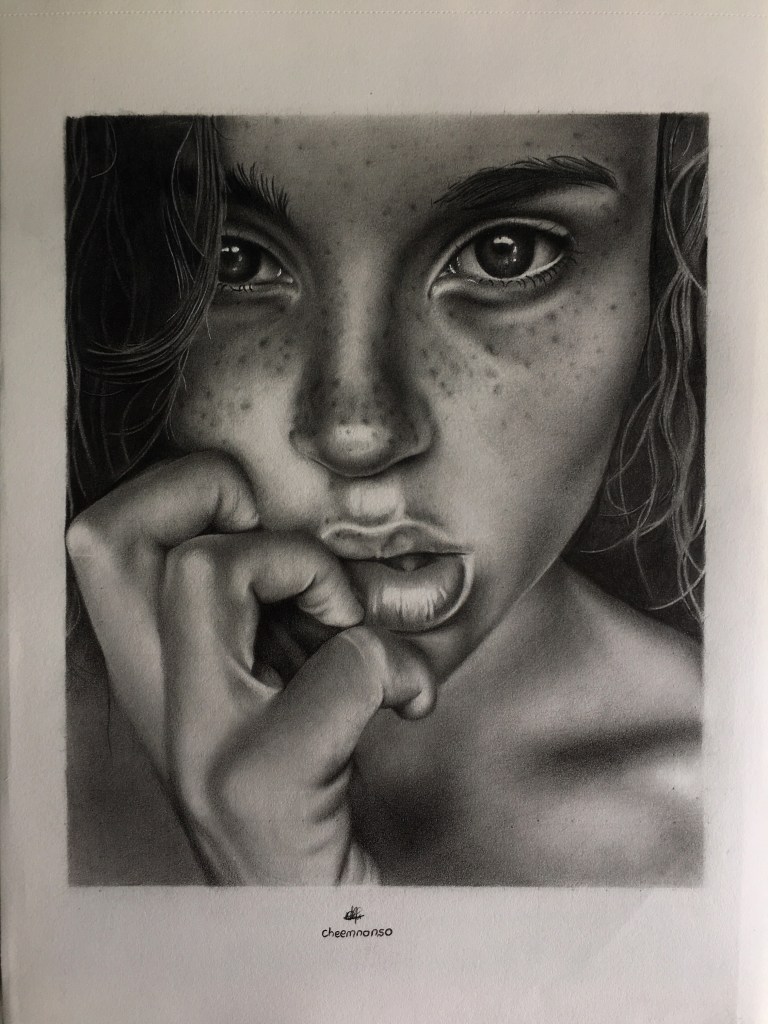 Anyway, these spurred me to have this drawing; no more than the inscription of love on the muse’s fingers, lol, and I will say I hugely enjoyed it, particularly as this is my first drawing in a while. I also look forward to creating more, as I have just recently got a new pencil and chalk pastel set that I would love to try out in the coming days; but in the meantime, do feel free to share your views on this piece.